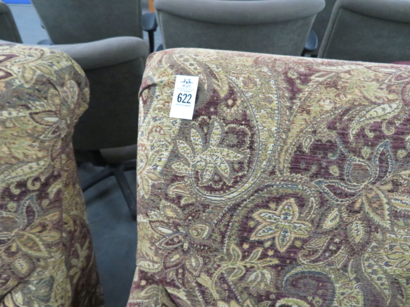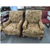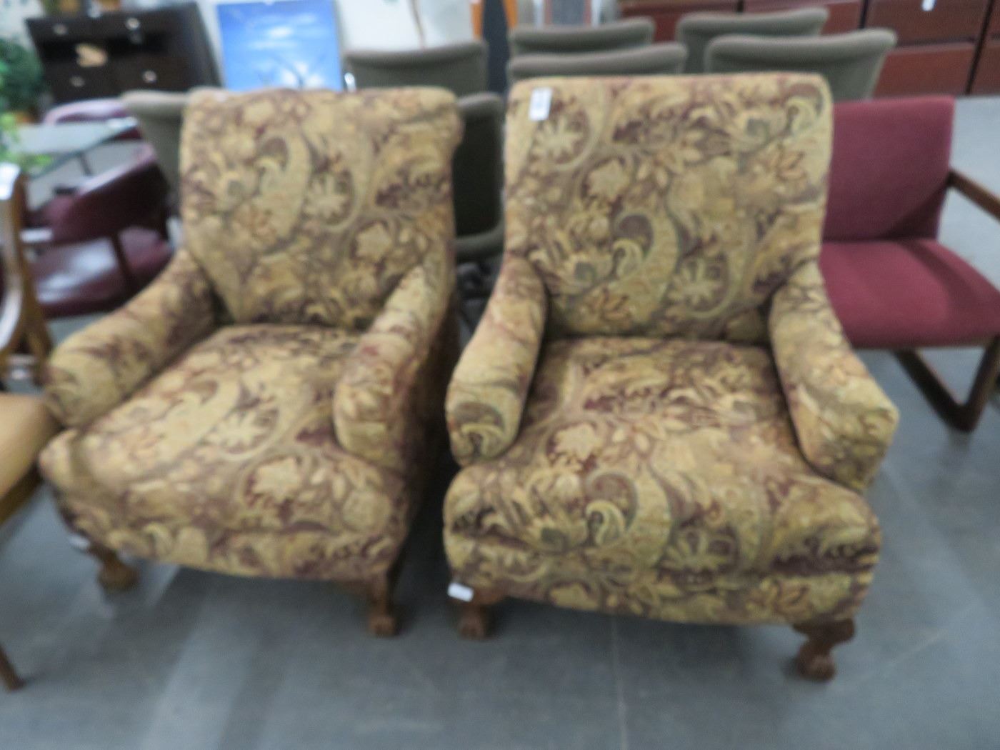 2-Tan/Burgandy Fabric Floral Print Clawfoot Easy Chairs - 2 X $
