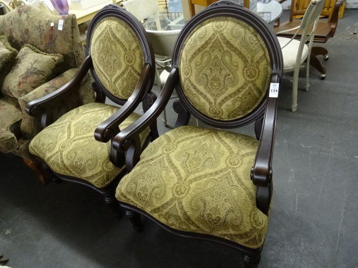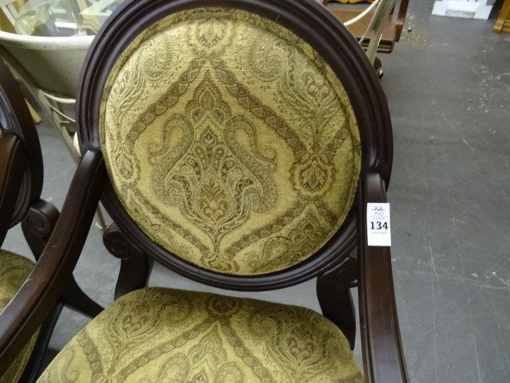 2 Wood Trim Medalion Back Arm Chairs - 2 Times the Money