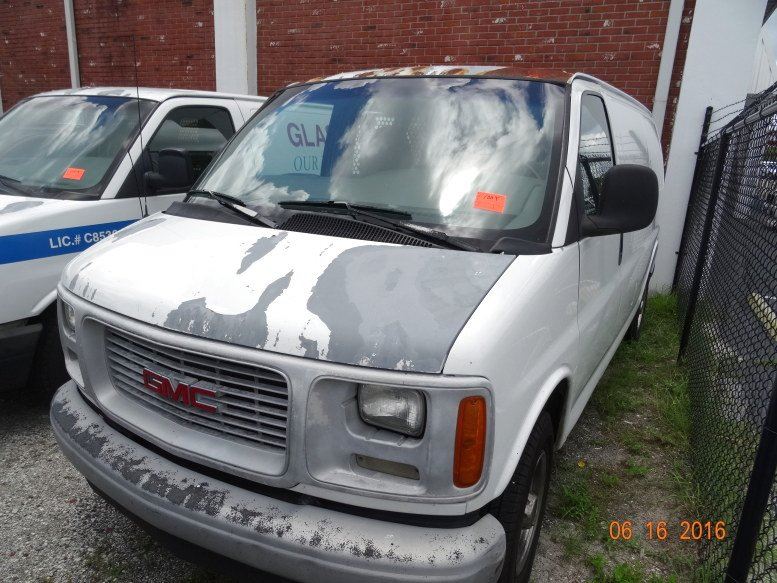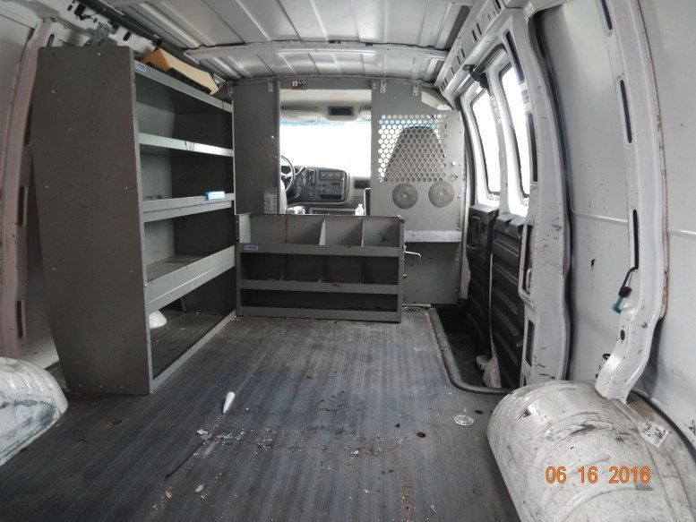 Wh/Gray Cloth, Auto, A/C, Stereo, Rubber Floor, Safety Walls, Stg. Racks, Reese Hitch, 5.7L, Vortec V8, Poor Paint, Shows 297,902 Mi. - Exempt - Vin # 1GTGG25R411166773