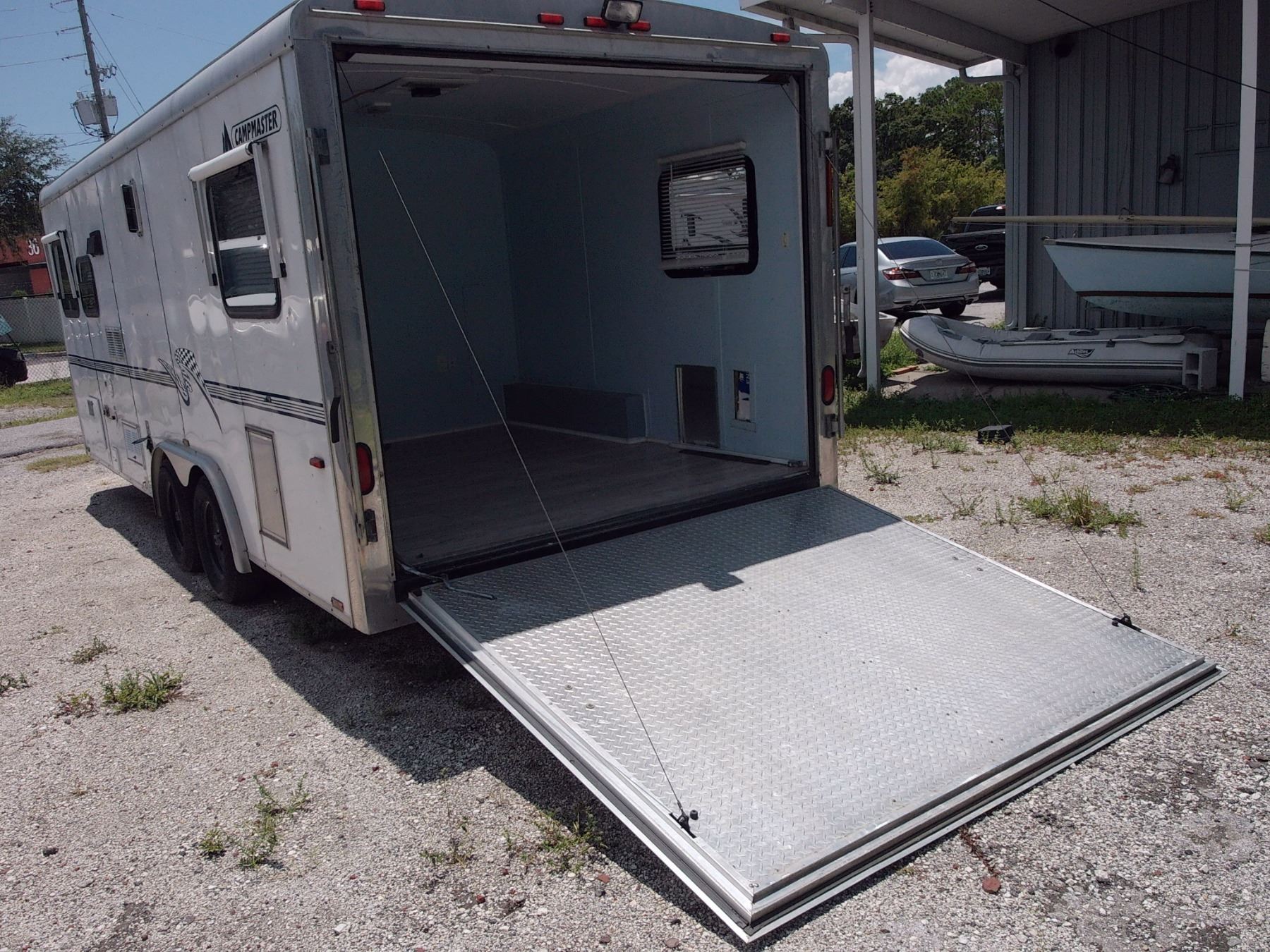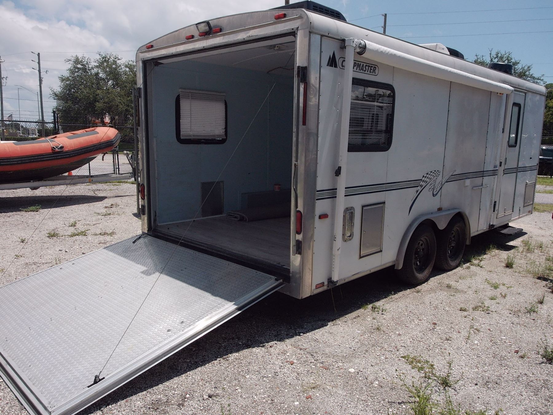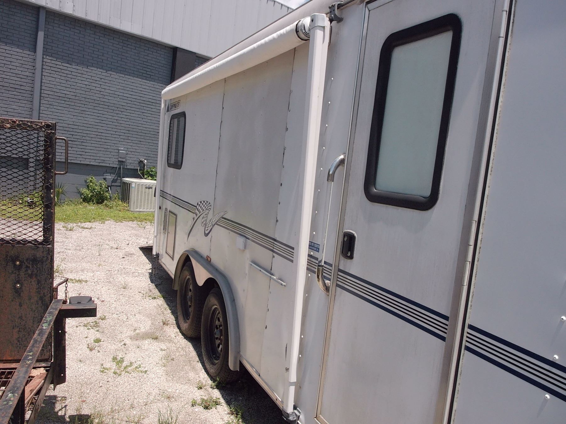 Side Door, Cargo Back Half, Roof A/C, Mini Kitchen, Folding Bed, Head w/Shower, LP, Nice Condition w/Awning - Vin # 5DT217J2821007306