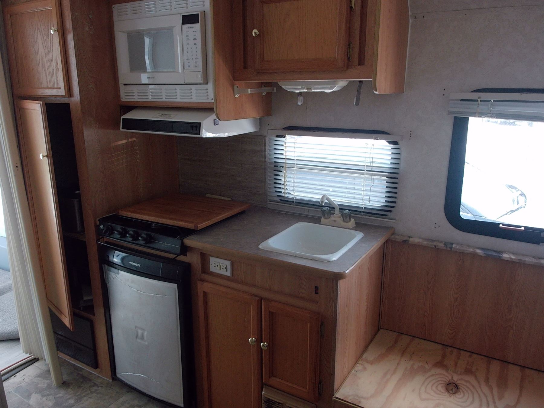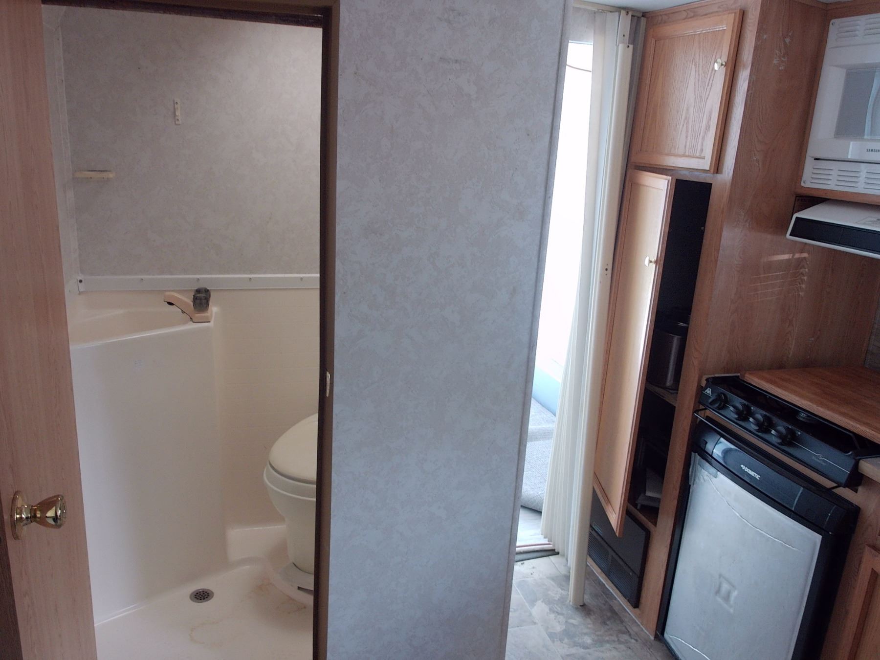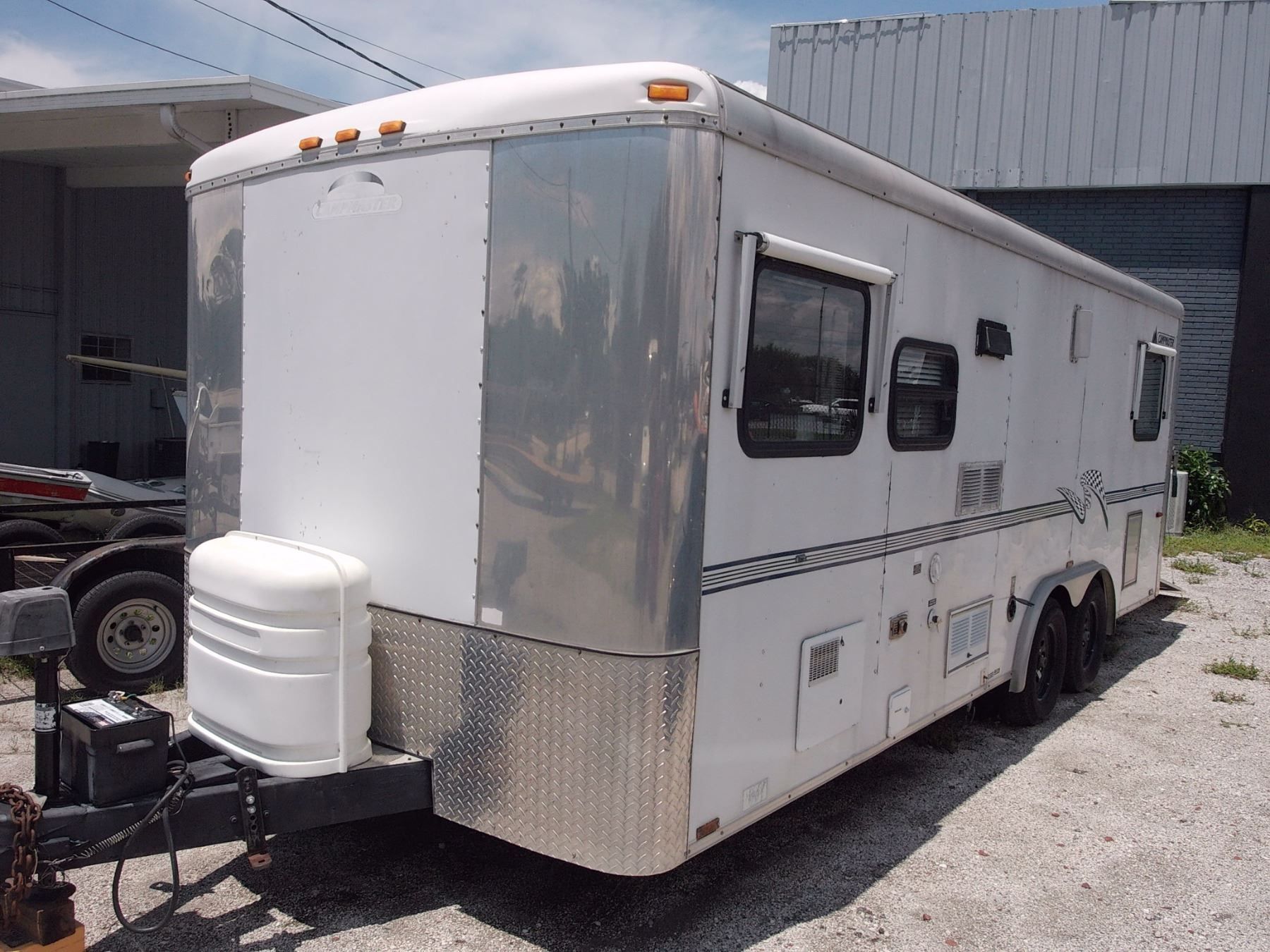 Side Door, Cargo Back Half, Roof A/C, Mini Kitchen, Folding Bed, Head w/Shower, LP, Nice Condition w/Awning - Vin # 5DT217J2821007306