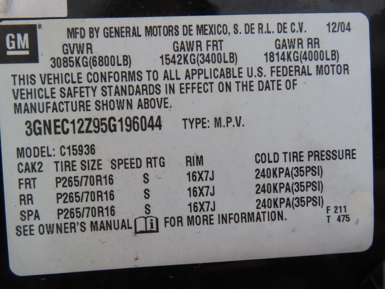 Blk/Grey/Grey Lthr, Auto, A/C, Stereo, PW, PL, PM, PS, DVD, Tint, Step Brs. 5.3L, V8, Alloys, Paint Issues/Scratch, Shows 150,064 Mi. - Exempt - Vin # 3GNEC12Z95G196044