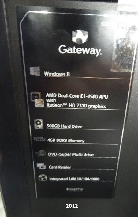 2012 Gateway Computer with Windows 8 - 500GB Hard Drive - 4GB Memory