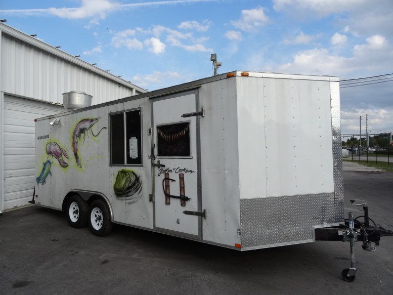 2012 Lark T/A 24’ V-Nose Enclosed Catering Trailer Fully Out Fitted W/Hood, Ansul, Oven, Char/Flat Grills, Ref. Prep, Waterheater, sinks & A/C, State Certified Business Opportunity! ** Has a Reserve **