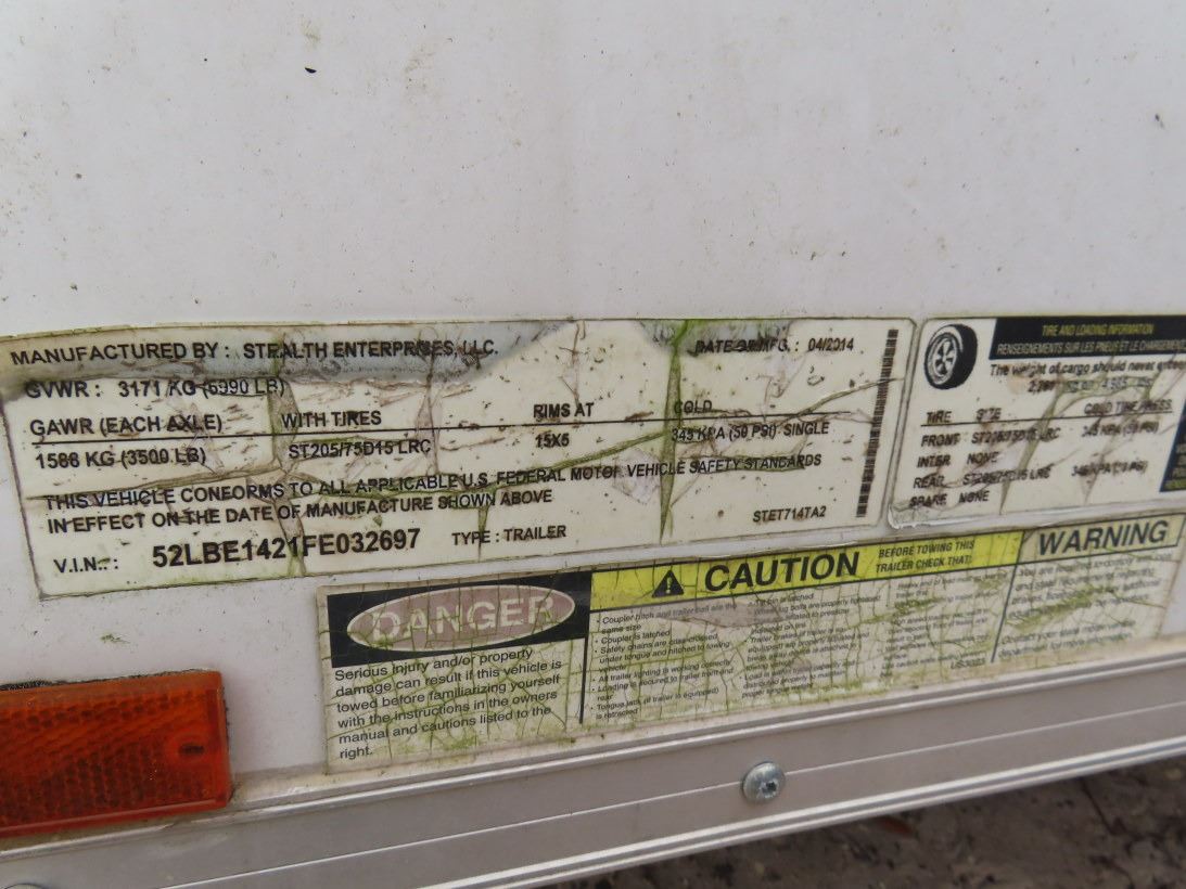 2015 Stealth Enterp. T/A Enclosed V-Nose Trailer - Vin # 52LBE1421FE032697