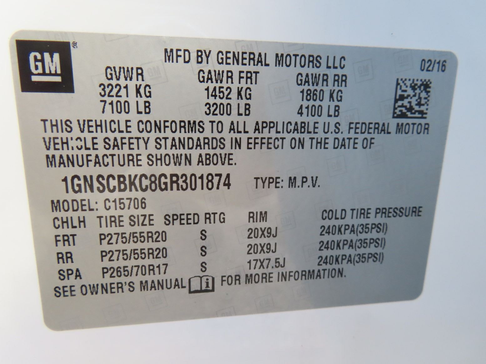Wht/Tan Lthr, Burl Trim, Auto, A/C, Stereo/Media, PW, PL, PM, PS, CC, Psr, Rng Brds, Tint, RF RK Alloys, Hitch, 5.3L V8, Clean, Shows 92,851 Mi. - Vin # 1GNSCBKC8GR301874