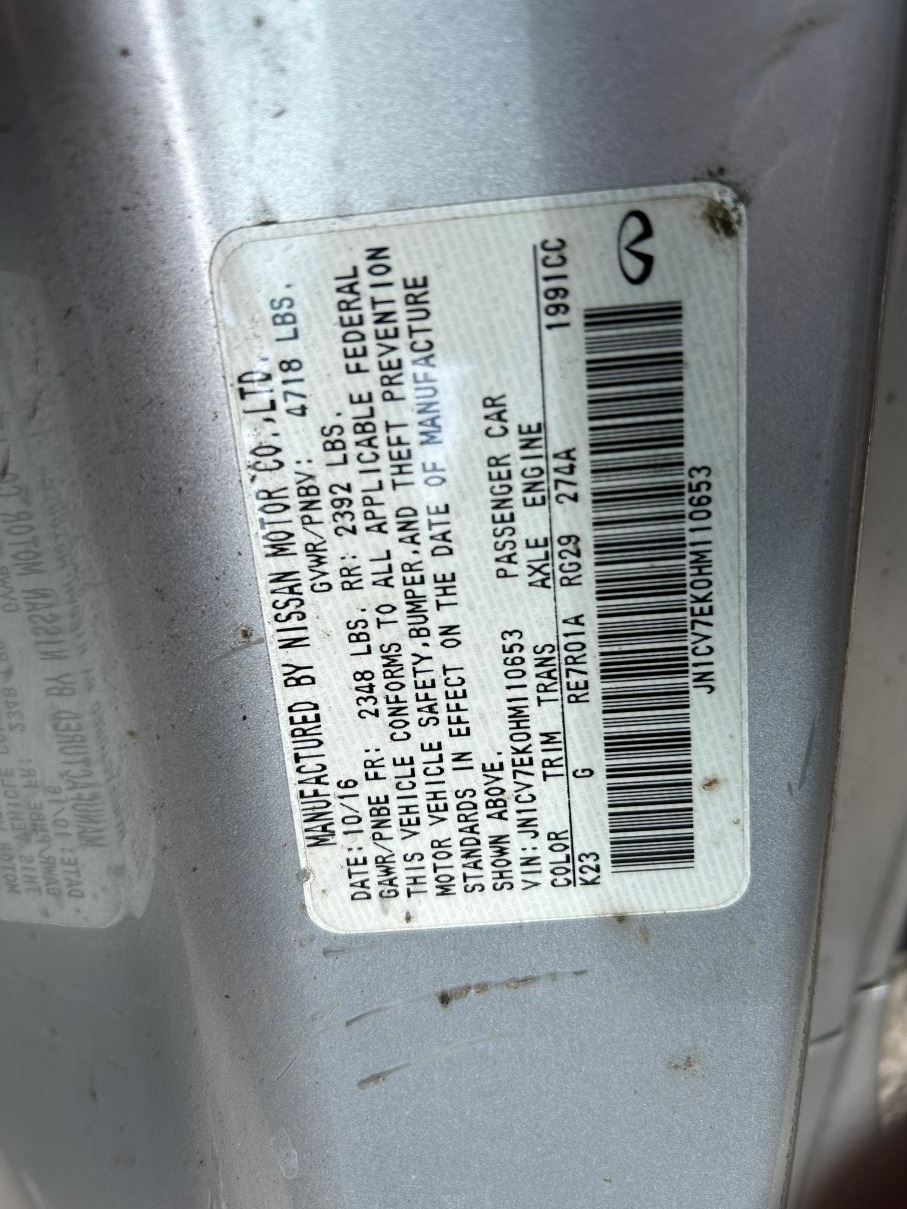 Silver/Charcoal Lthr, Auto, A/C, Stereo/Media, PW, PL, PM, PS, CC, PSR, Tint, Alloys, 2.0L Turbo 4 Cyll, FND Replaced, Cowl Dmg, Shows 79,808 Mi. - Vin # JN1CV 7EK0MH110653