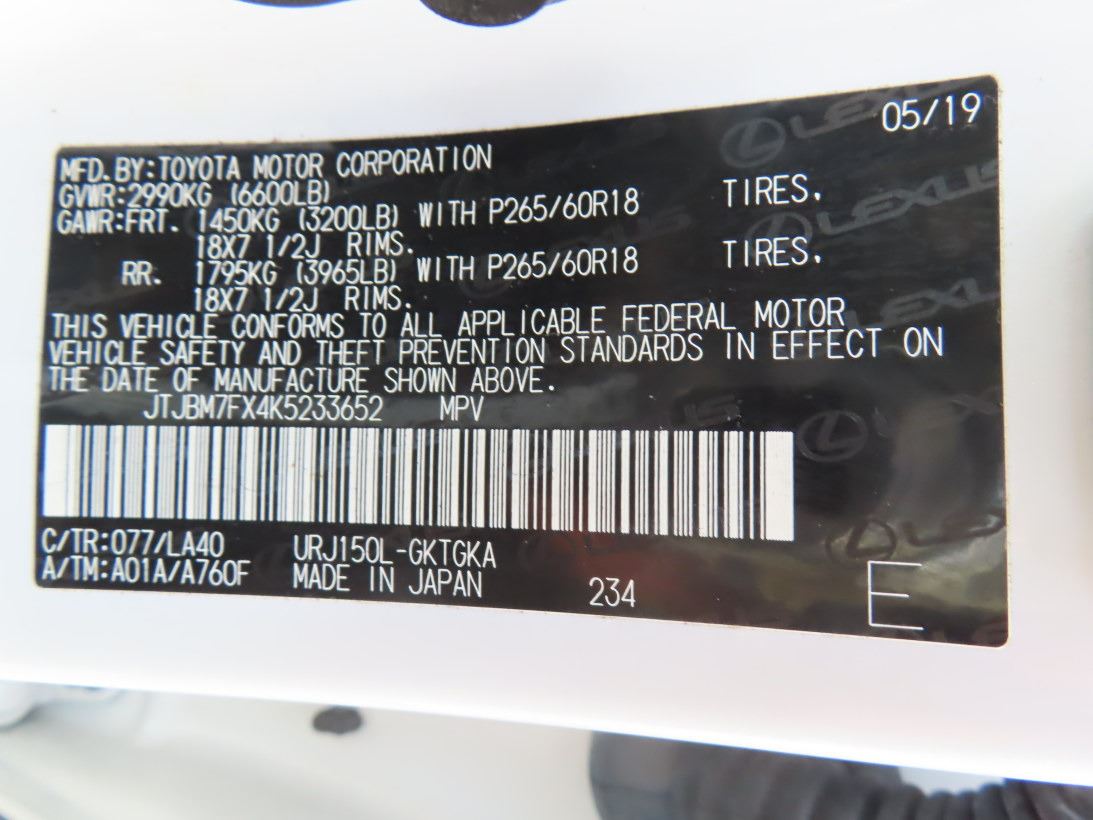 White/Grey Lthr, Cherry Trim, Auto, A/C, Stereo/Media, PW, PL, PM, CC, Psr. Rng. Brds, Alloys, Reese Hitch, 4.6L, V8, Very Clean, Shows 29,422 Mi. - Vin # JTJBM7FX4K5233652 *STTA*