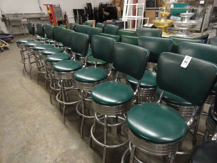 27 Green Padded Swivel Barstools w/Chrome Base - 27 Times the Money