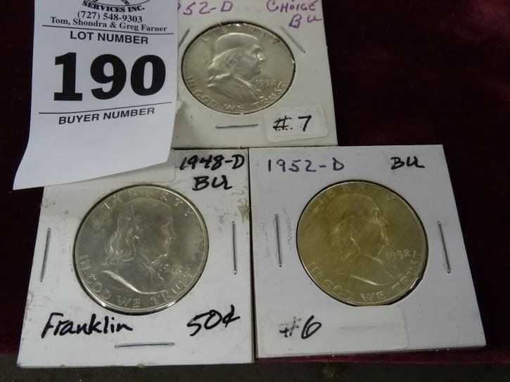 3 - 1948/1952 Franklin Half Dollars - 3 Times the Money