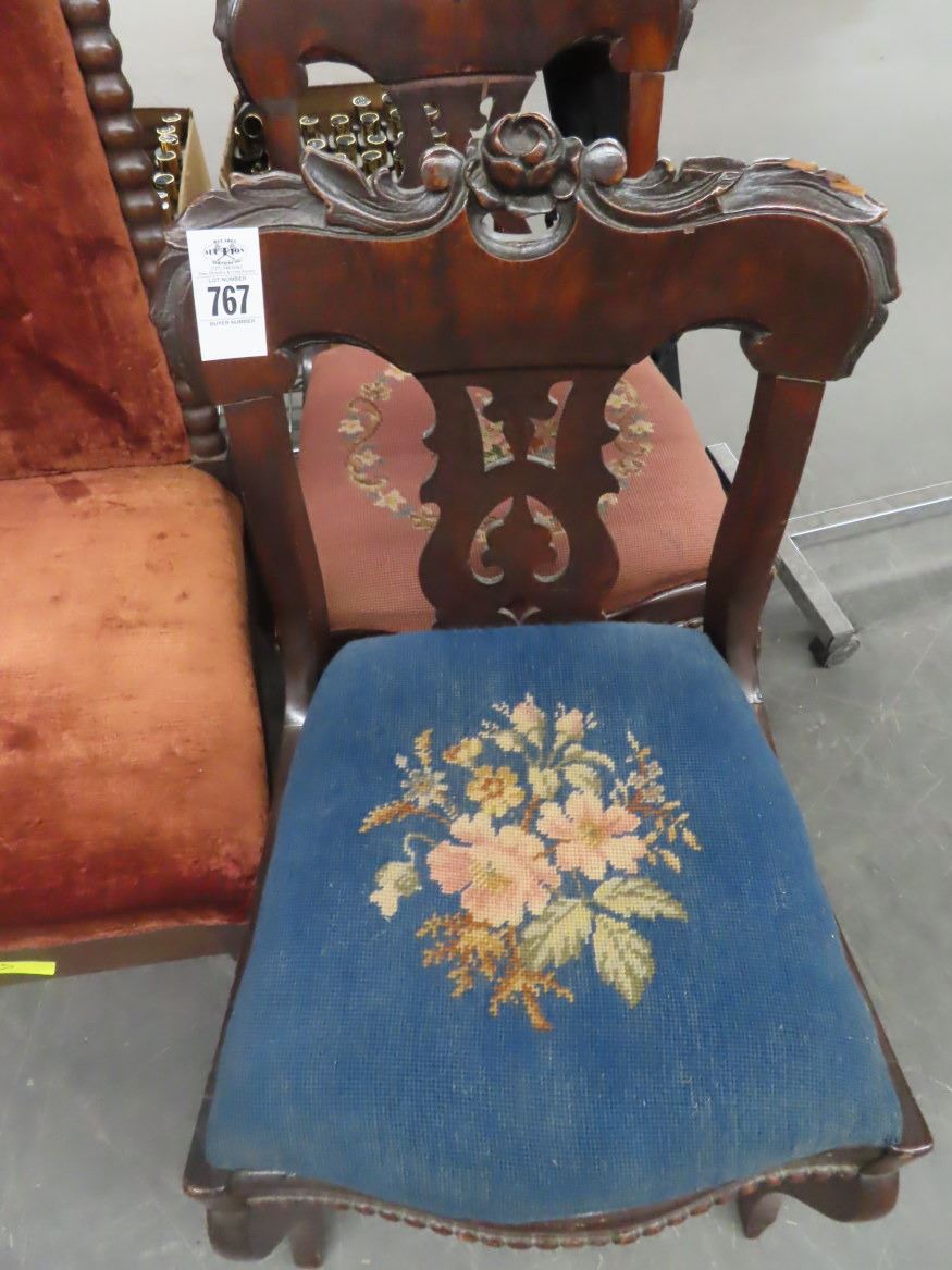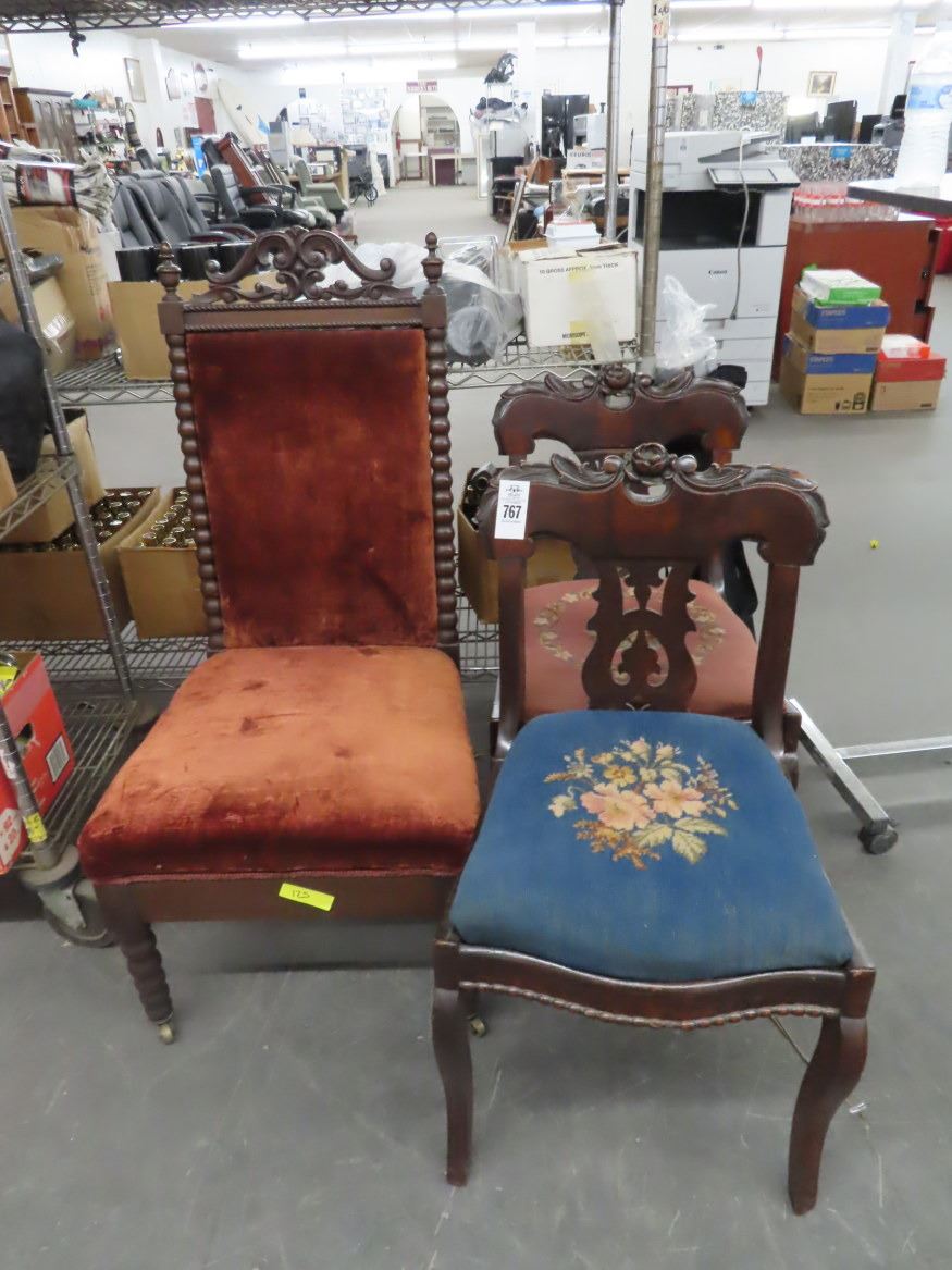 3-Antique Mahogany Padded Side Chairs - 3 X $