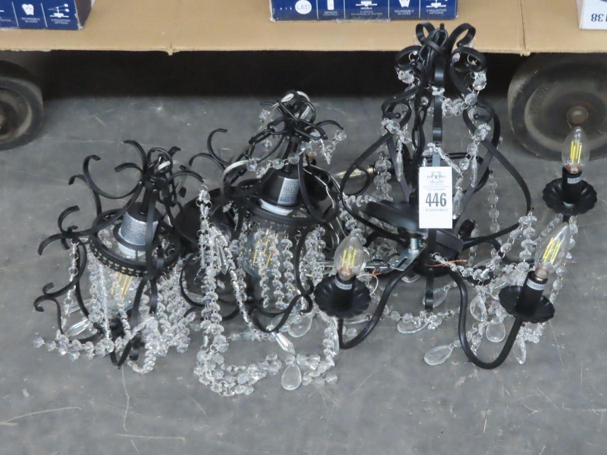 3-Black Metal and Crystal Chandelier - 3 X $
