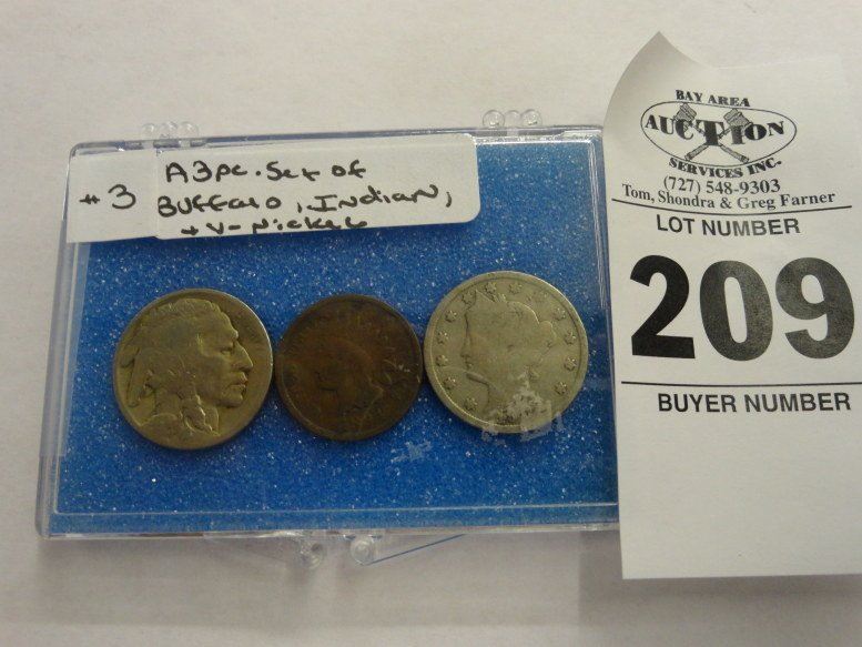 3 Pc. Set of Buffalo, Indian & V-Nickel