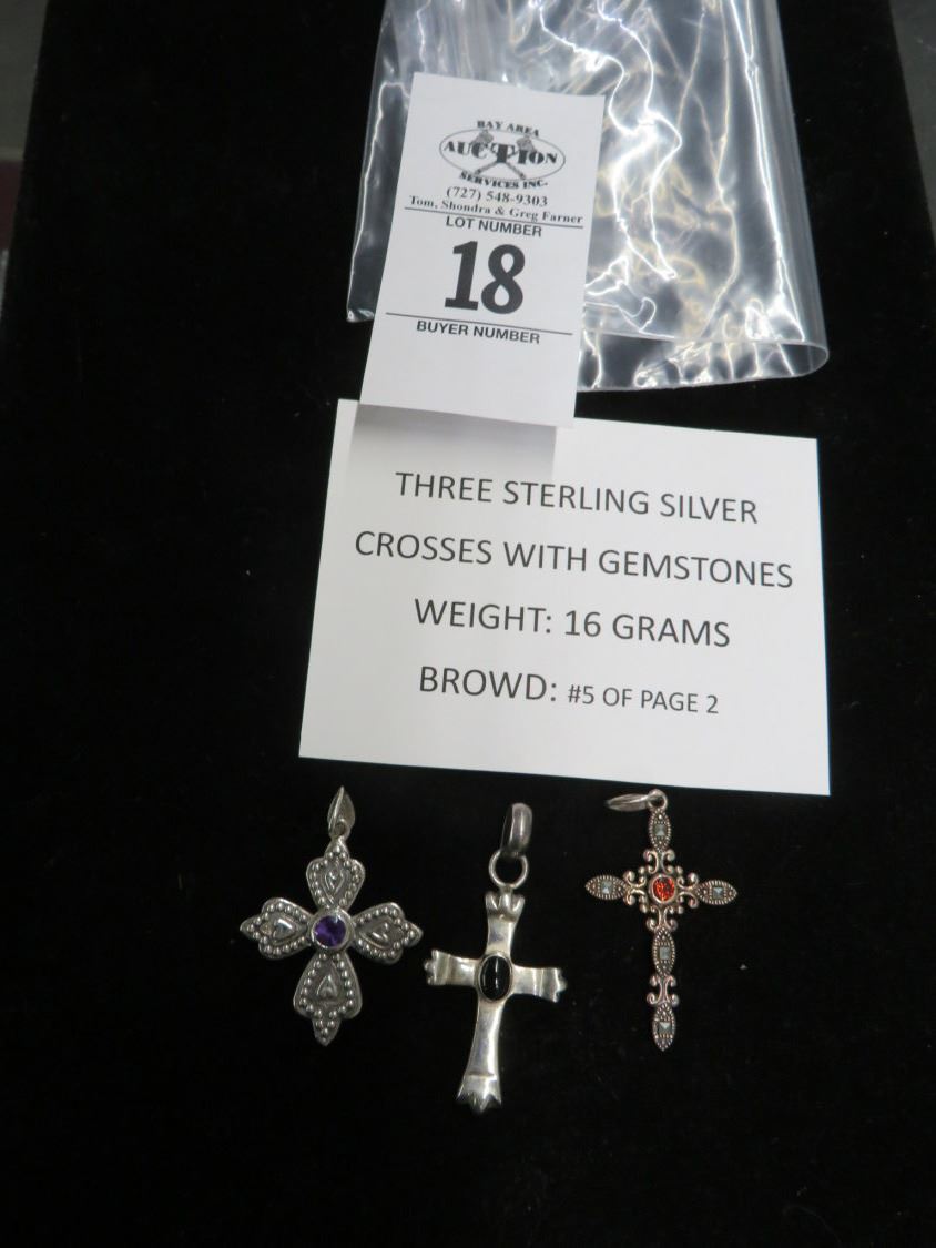 3 Sterling Silver Crosses w/Gemstones - 16g