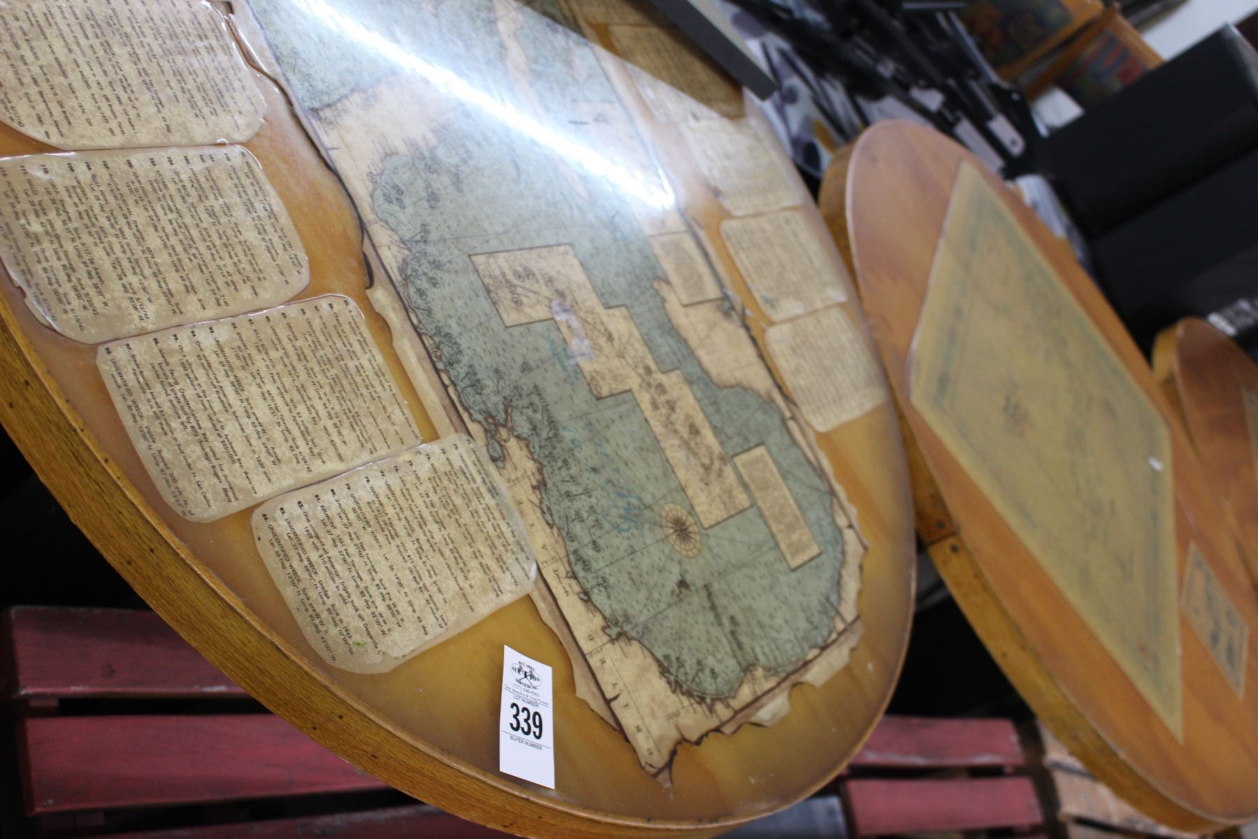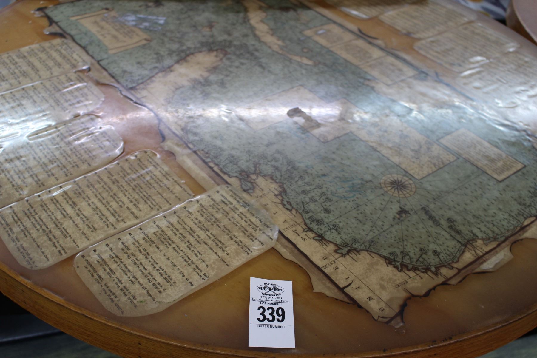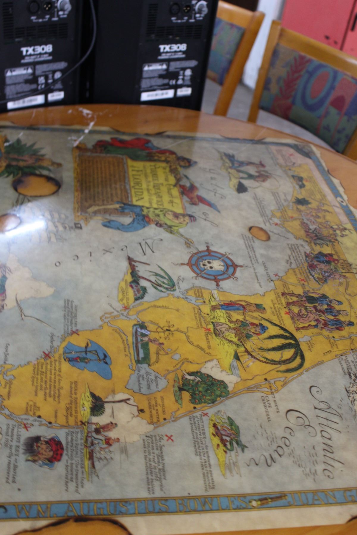 4- 4' Diameter Round High Top Table w/Map Décor Inlay - 4 X $