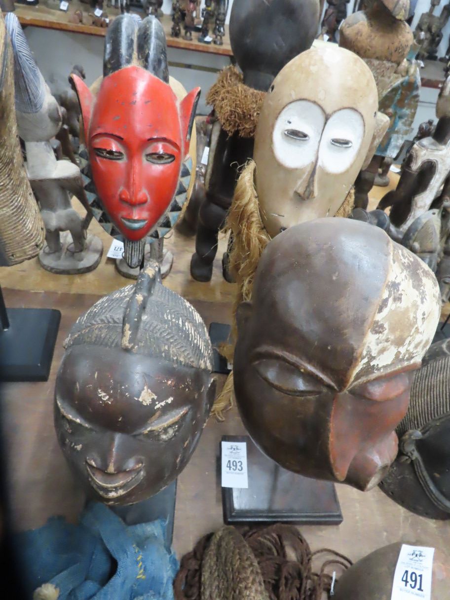 4-African Carved Mask On Stand - 15"/22" - 4 X $