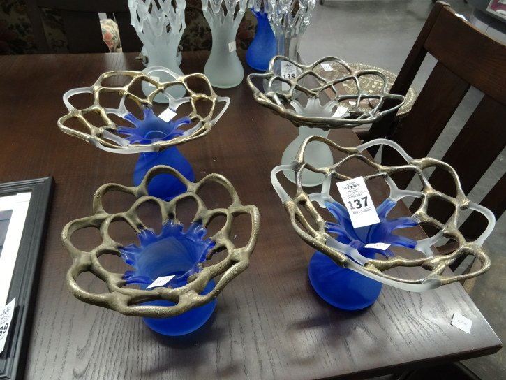 4 Art Glass With Metal Footed Bowls - 4 Times the Money - No Shipping