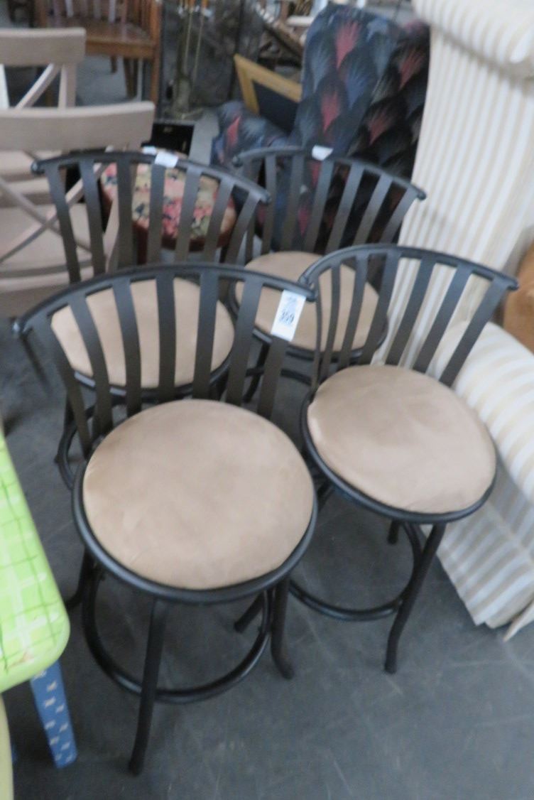 4-Brown Metal Tan Padded Seat Bar Stools - 4 X $