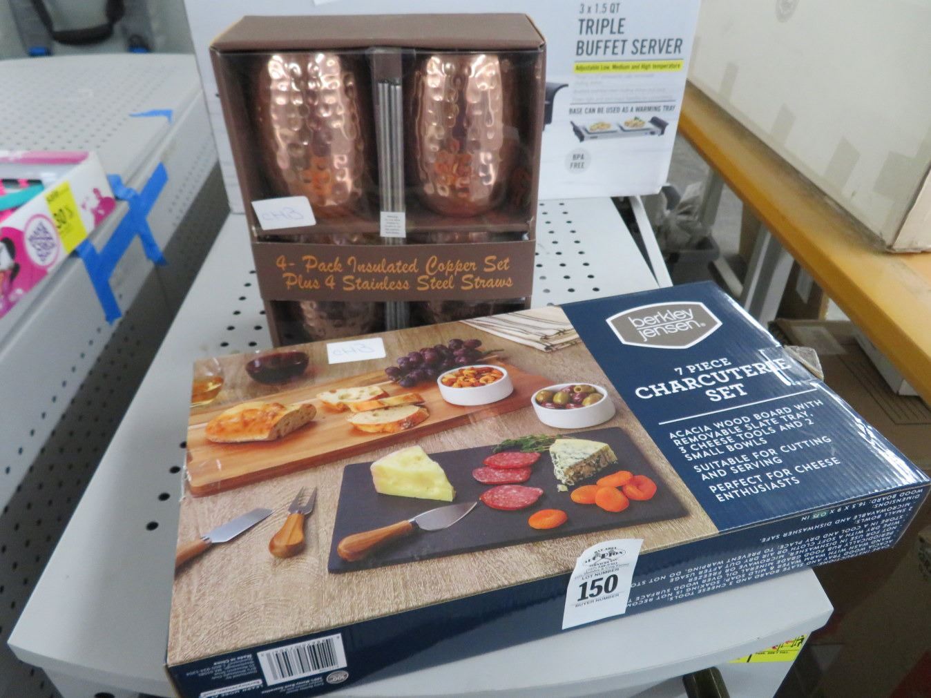 4 Pack Copper Cups, 7 Piece Charcuterrie Set