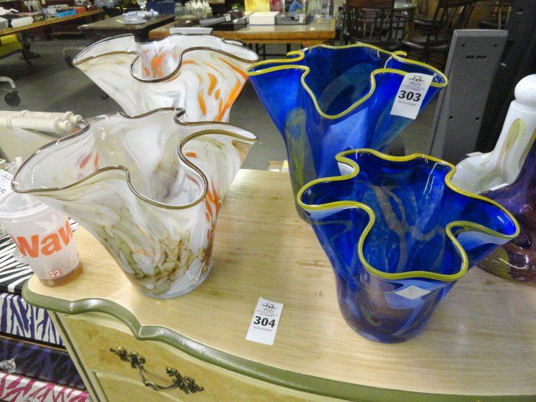 4 Ruffled Art Glass Vases - 4 Times the Money