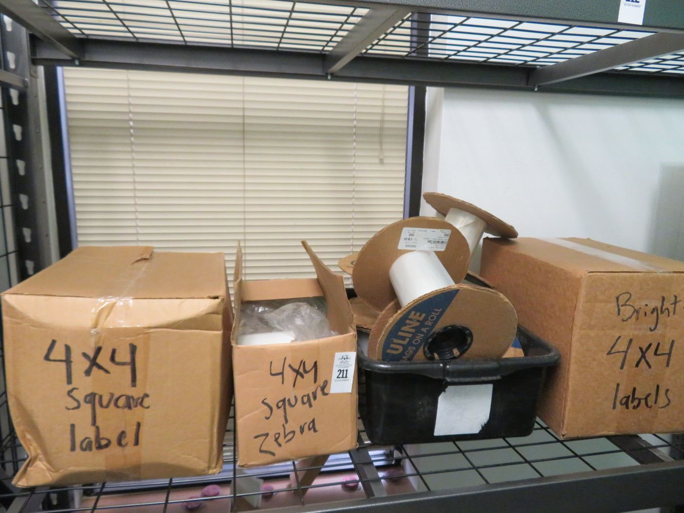 4X4 Square Labels, Bin w/Plastic Wrap Bags, Lids On Shelf