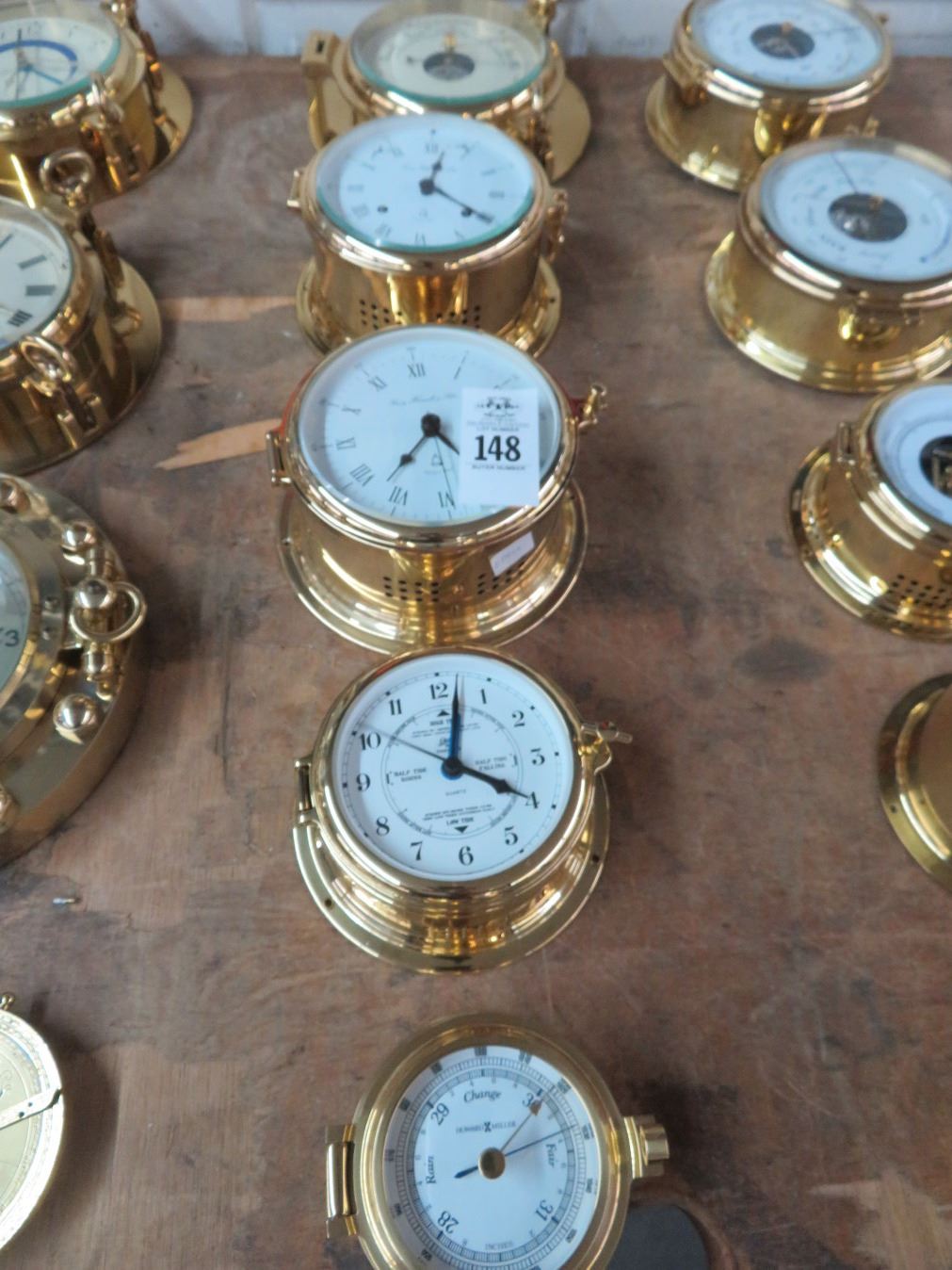 5-Brass Porthole Style Ships Clock, Barometer - 5 X $