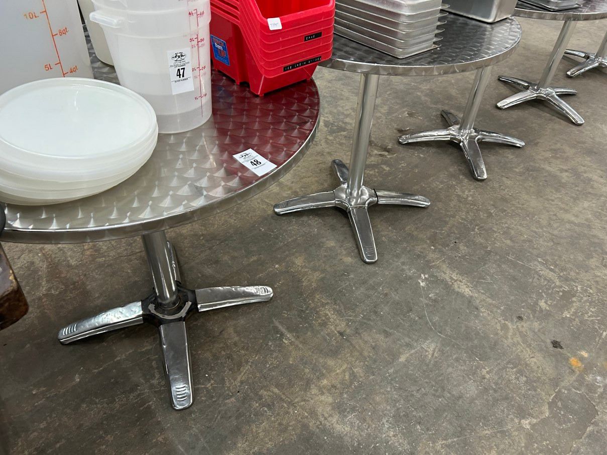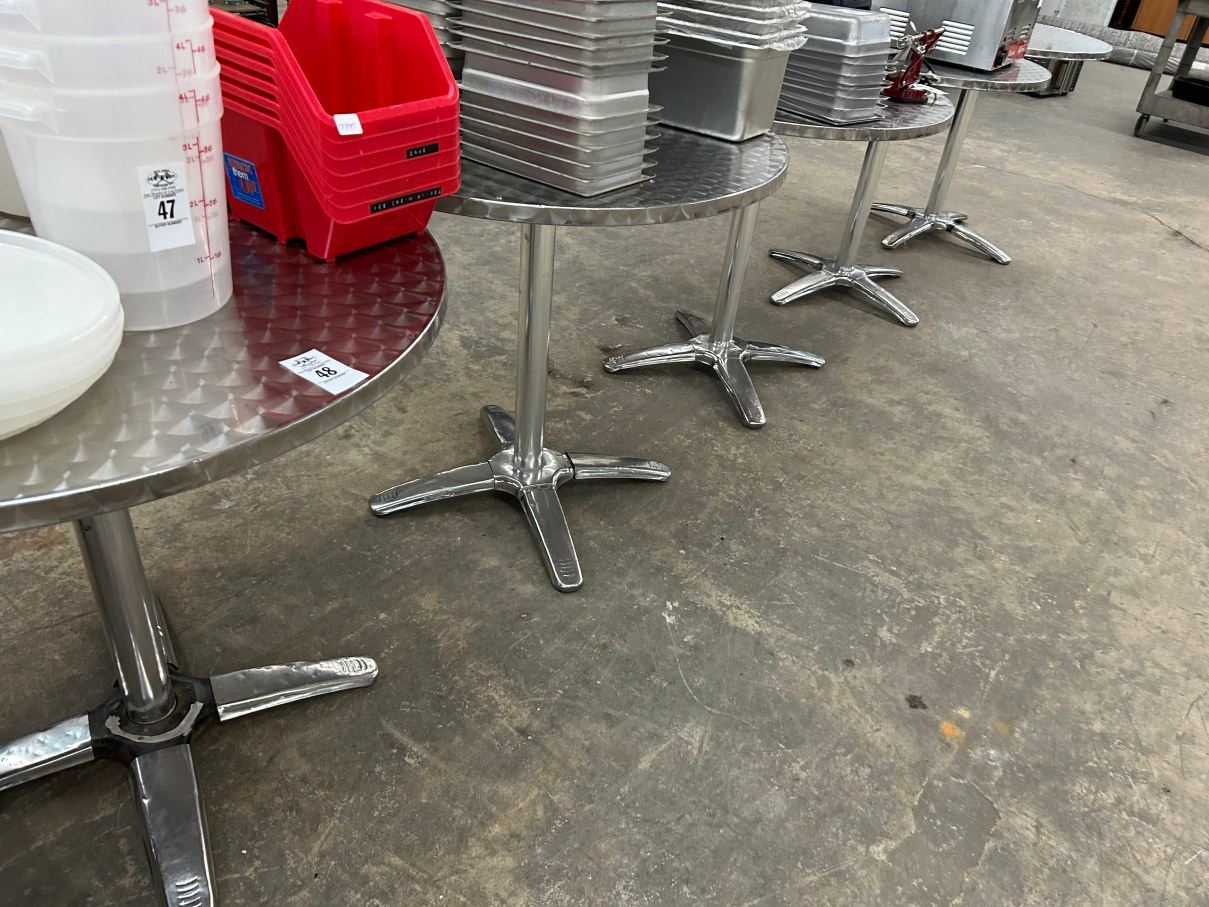 5-Brushed Metal Patio Pedestal Round Dining Table - 5 X $