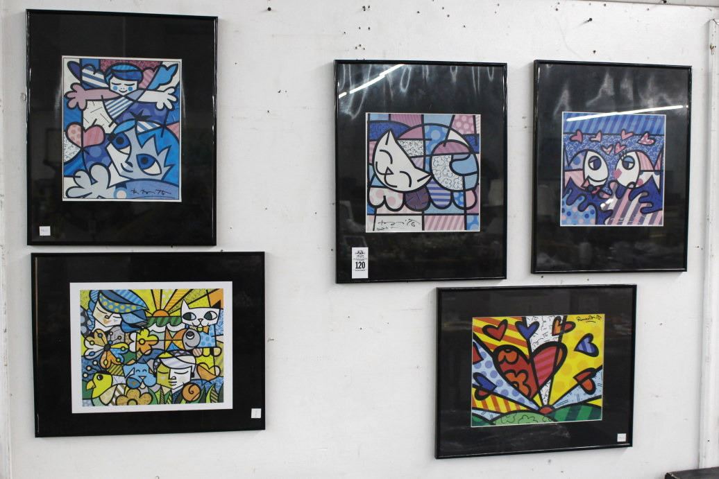 5-Colorful Framed Wall Art Artist Signed Romariez Britto - 5 X $