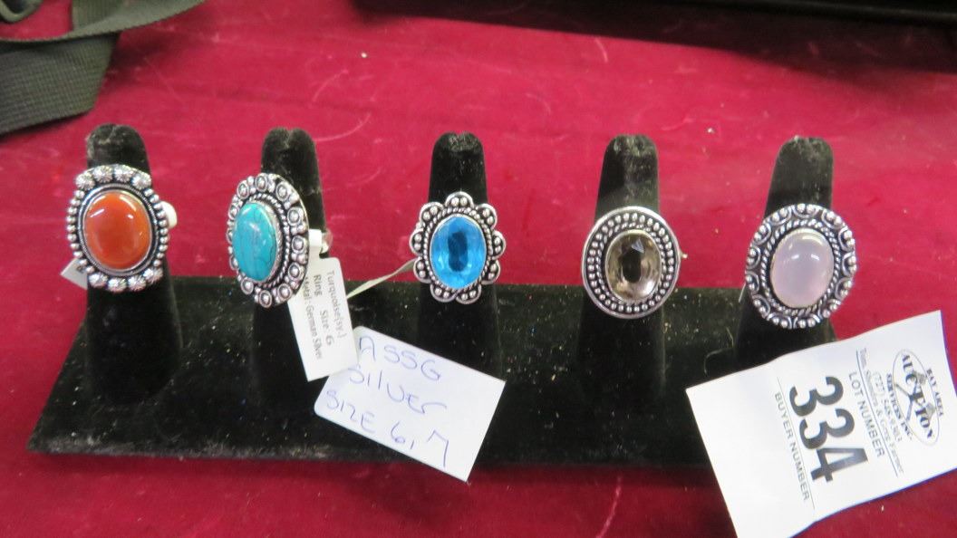 5-Silver Ring w/Turquoise, Quartz or Topaz Stone - 5 X $