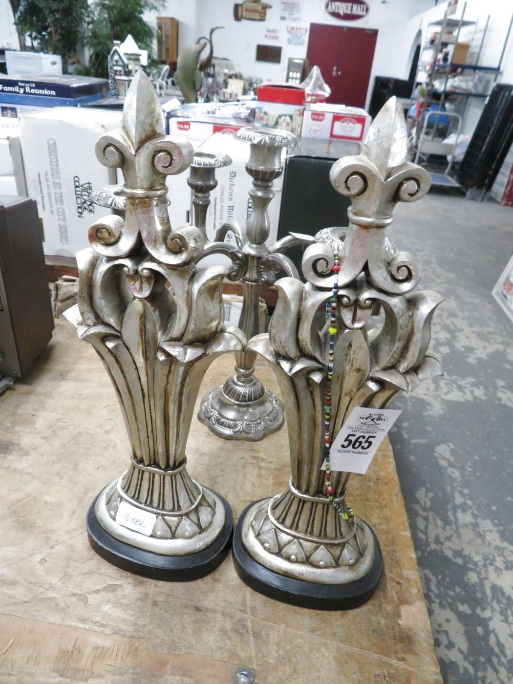 5 Stick Silverplate Candleabra, Pedestal Décor - 3 Pc.