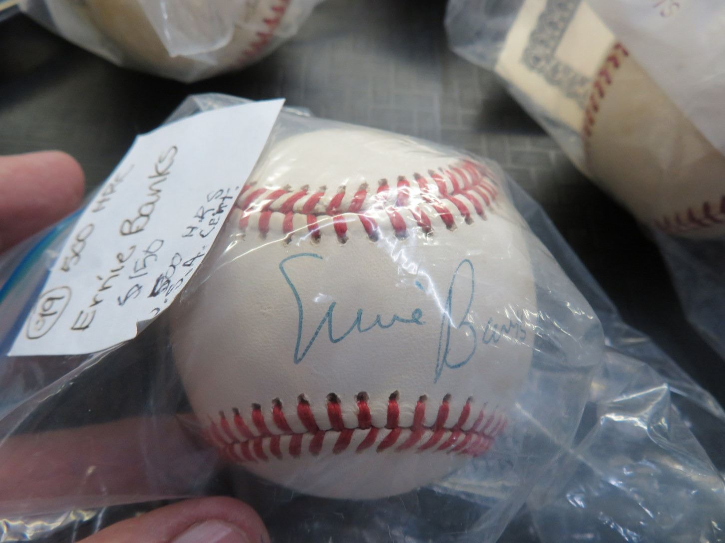 6-Autographed Baseball Phil Rizzuto, Willie Mocove, Earnie Banks, Other - 6 X $