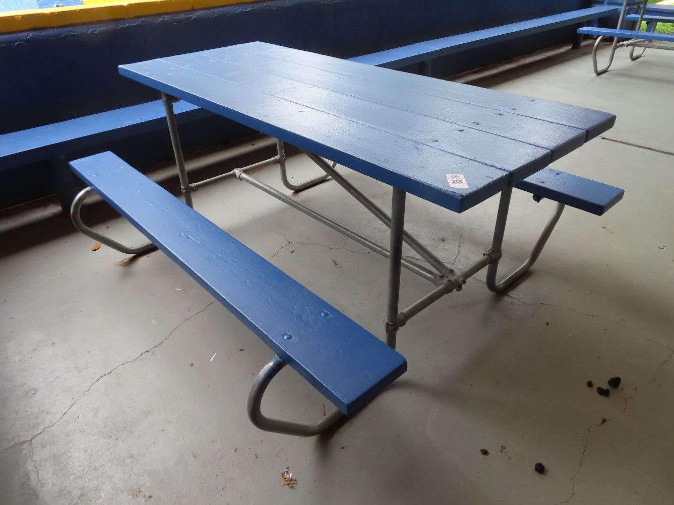 6-Wood Steel Frame Blue Picnic Tables - 6 X $