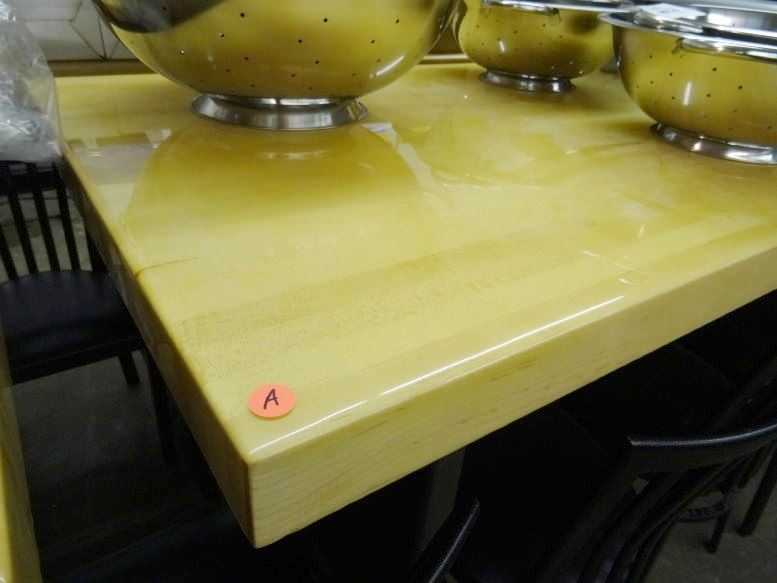 8' Butcher Block High Top Hall Table w/High Gloss Clear Top, Metal Base & Foot Rests