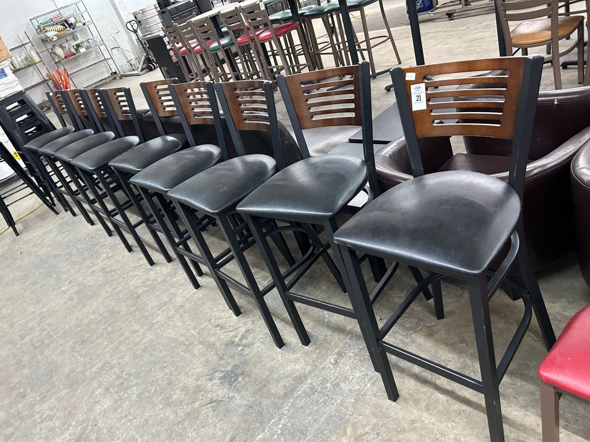 9--Contemporary Black Wood Back Bar Stools - 9 X $