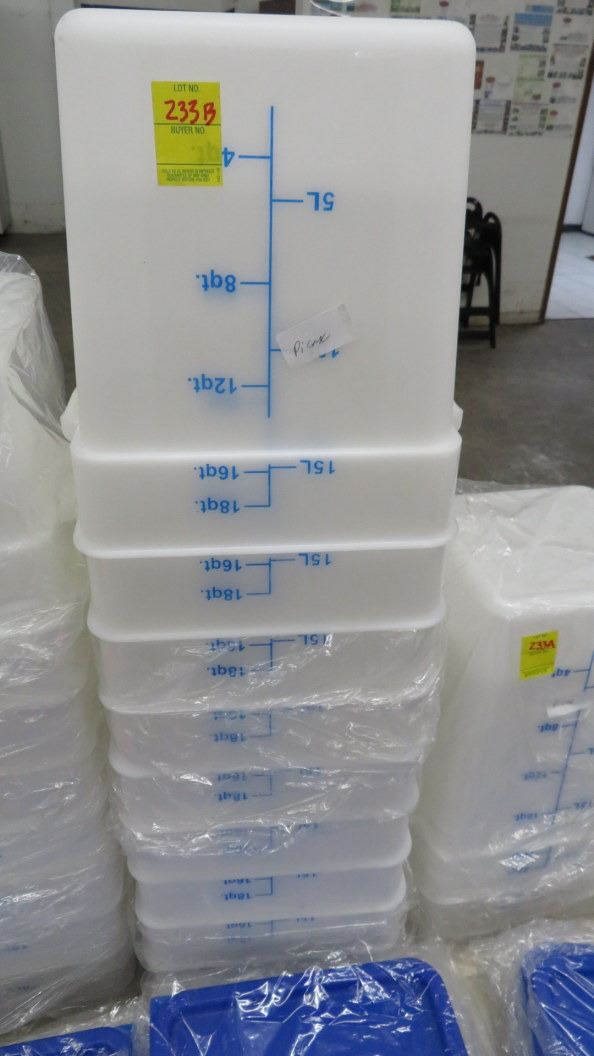 9-New 18 Qt. Lidded Measuring Bins - 9 X $