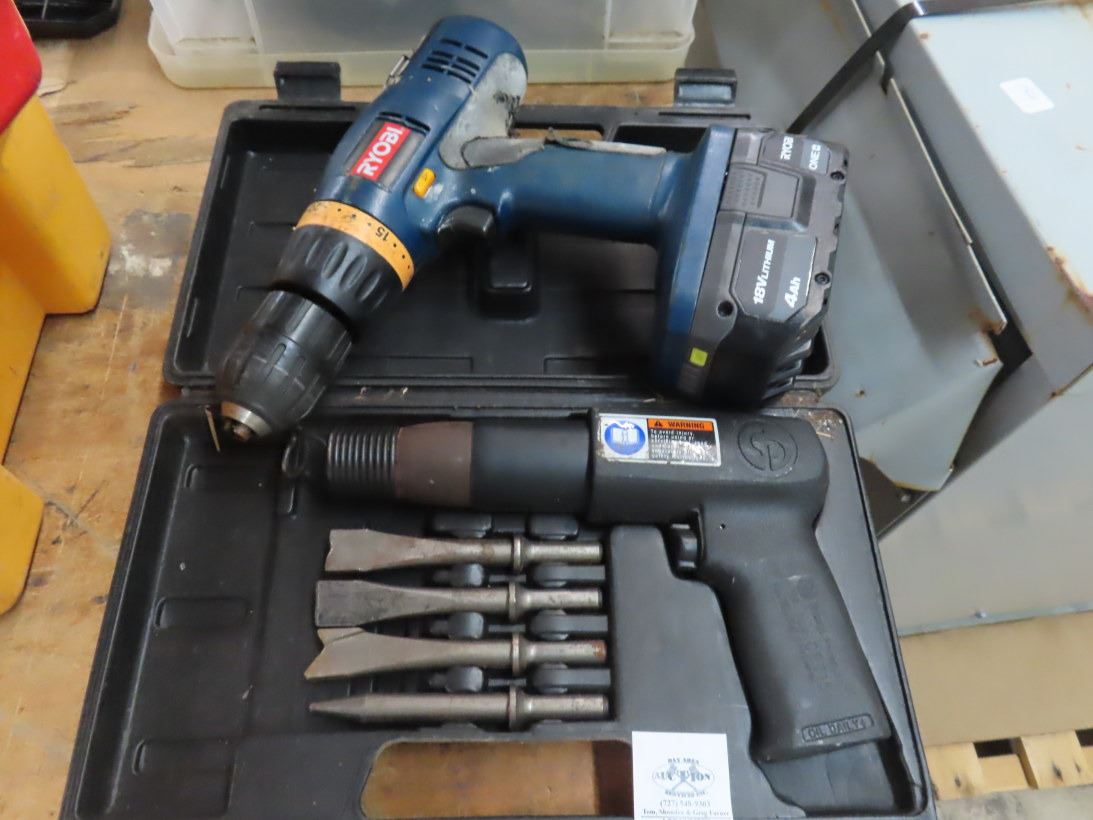 Air Chisel Gun, Ryobi Cordless Drill - (No Charger)