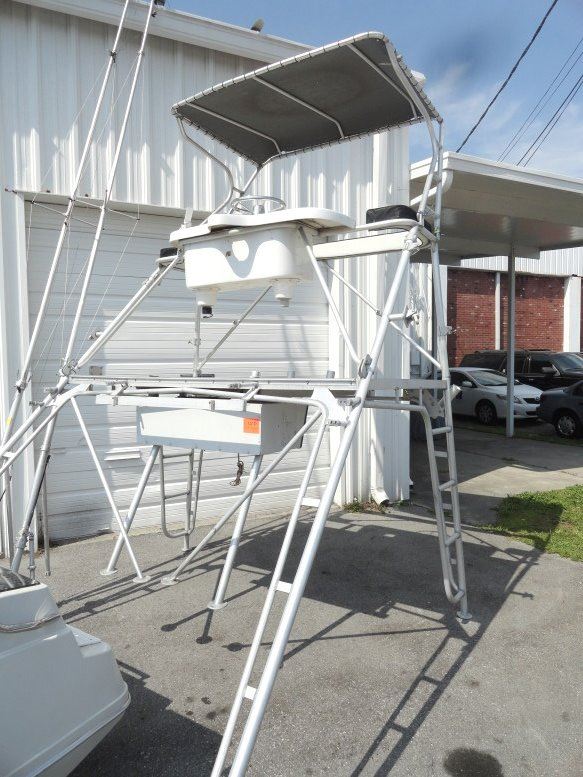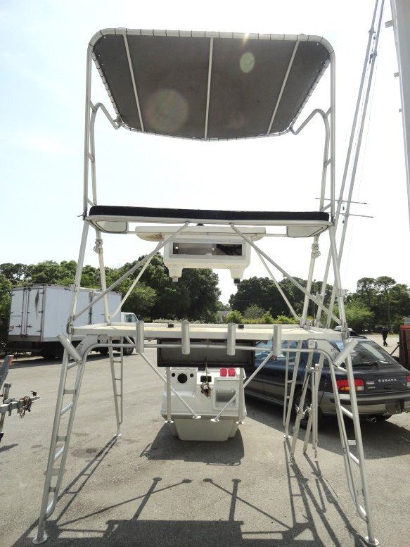 Aluminum Gunnel Mount Tuna Tower w/Steering, Rod Holders, Bimini & Outriggers