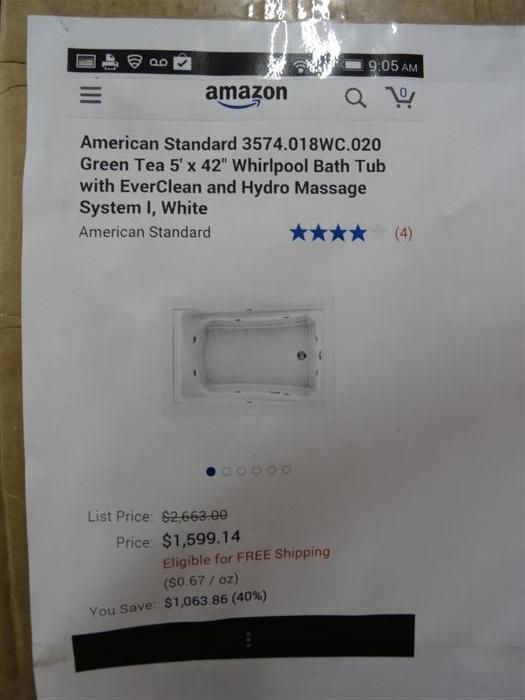 American Standard Whirlpool Tub - Price page on box from Amazon $1599