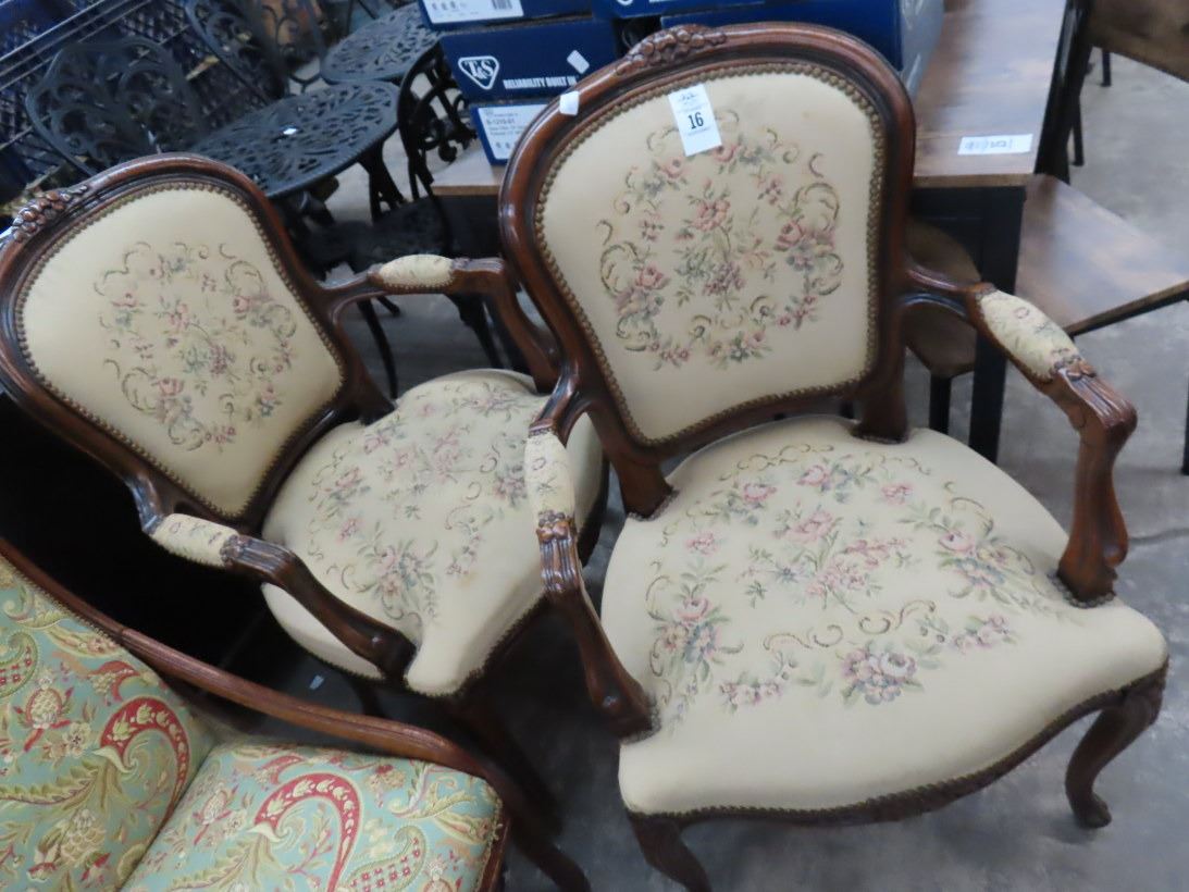Antique Mahogany Queen Anne Needlepoint Armchairs - Pair