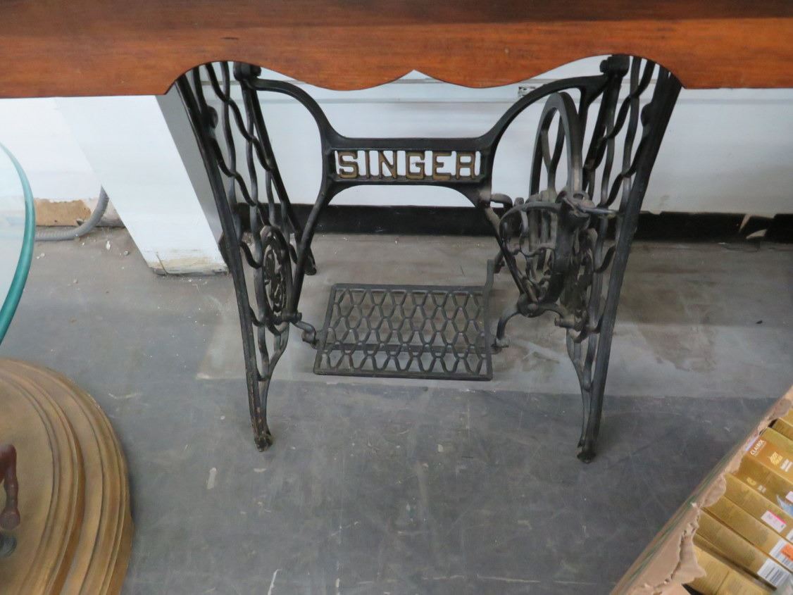 Antique Mahogany Side Table w/Singer Sewing Machine - Cast Base