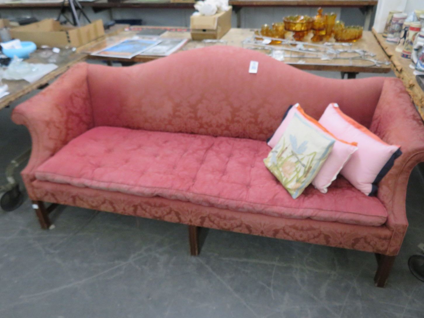 Antique Maroon Cloth Sofa w/Mahogany Legs