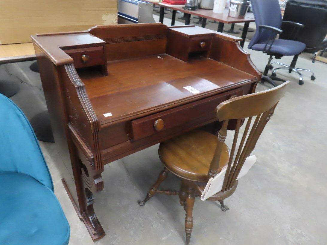 Antique Mission Style Mahogany Desk w/Glass Ball In Claw Swivel Chair