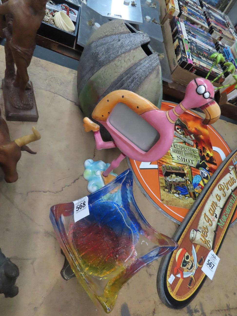 Art Glass Dish On Stand, Flamingo Picture Frame & Urn