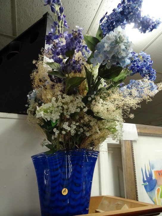 Art Glass Vase w/Silk Floral