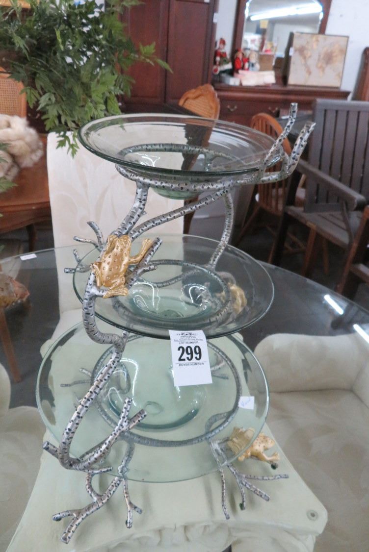 Art Metal/Glass Frog Trim 3-Tier Bowl Display