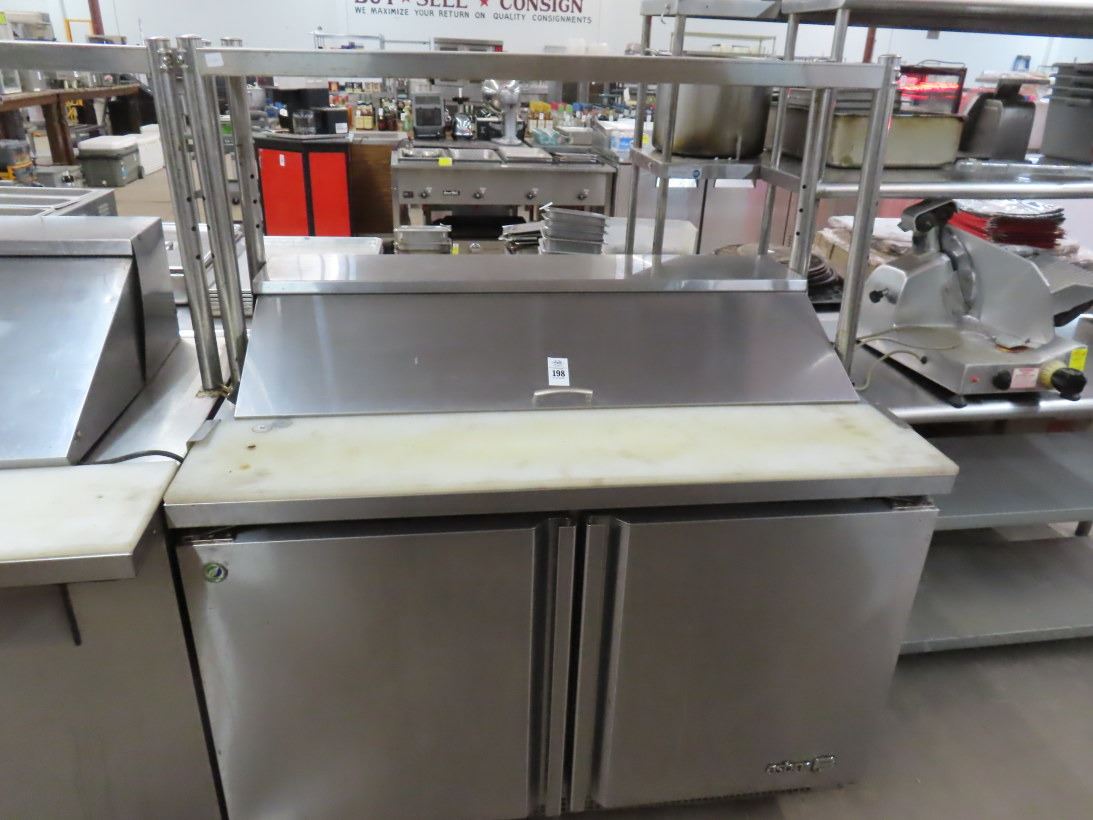 Asber 4' Ref. Rolling Sandwich Prep w/Overshelf 35 degrees