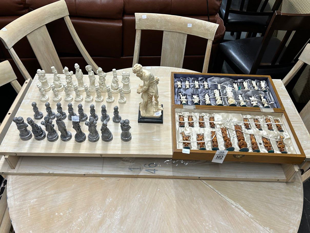 Asst. Carved/Porcelain Chess Pieces/Rooks w/Greek Statuary