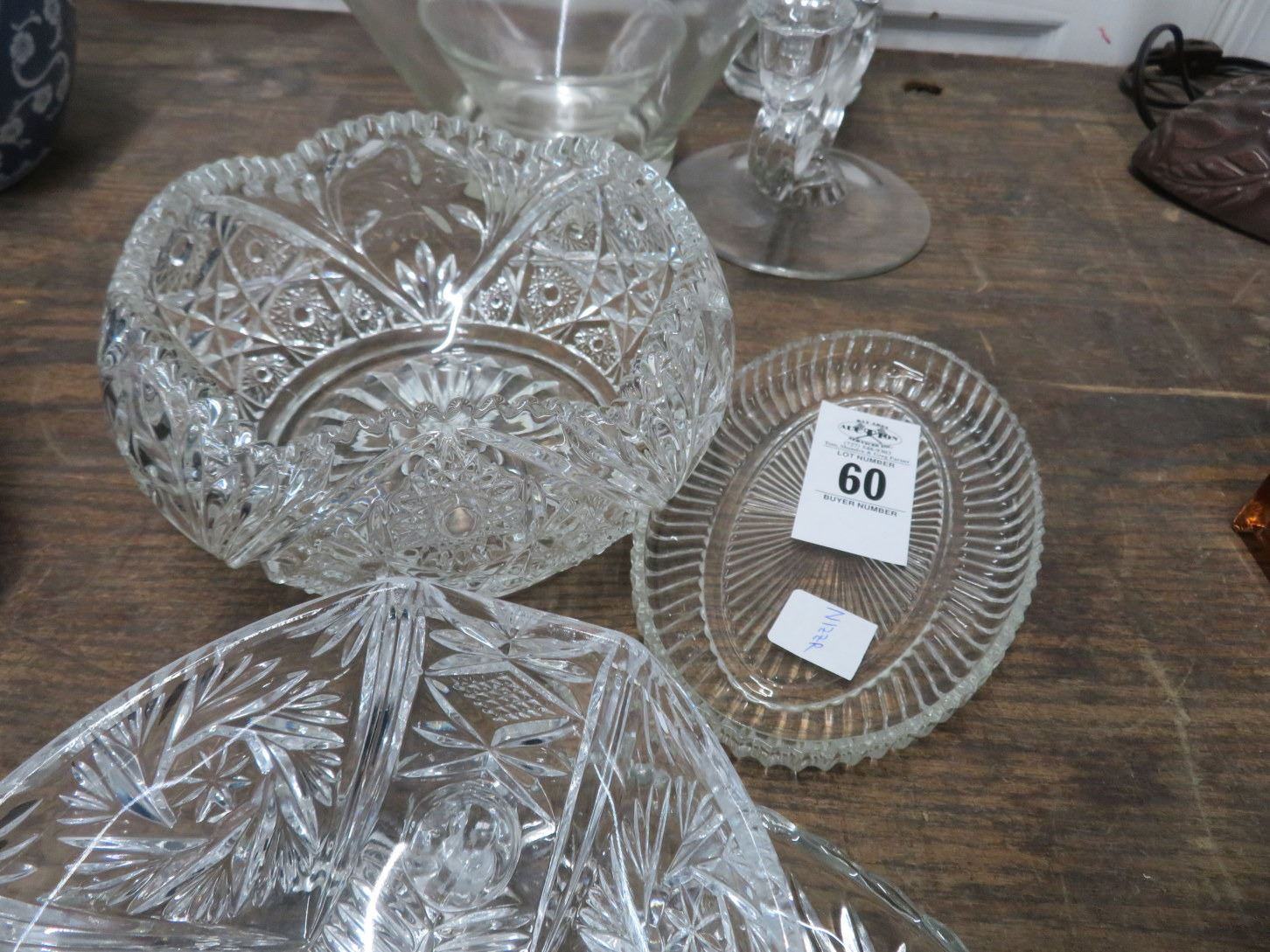 Asst. Crystal and Pressed Glass, Bowls, Candlestick, Picture