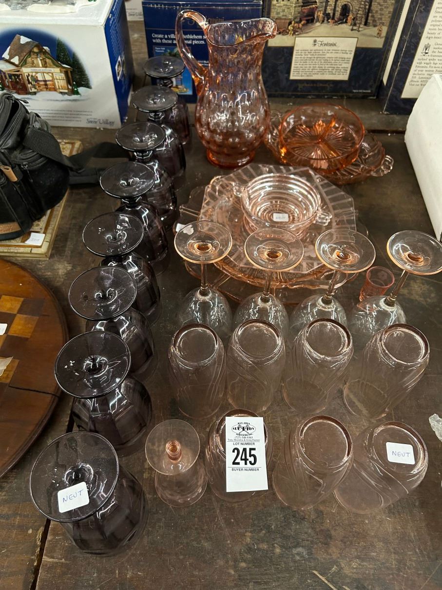 Asst. Depression Glass Stems/Glasses/Pitcher