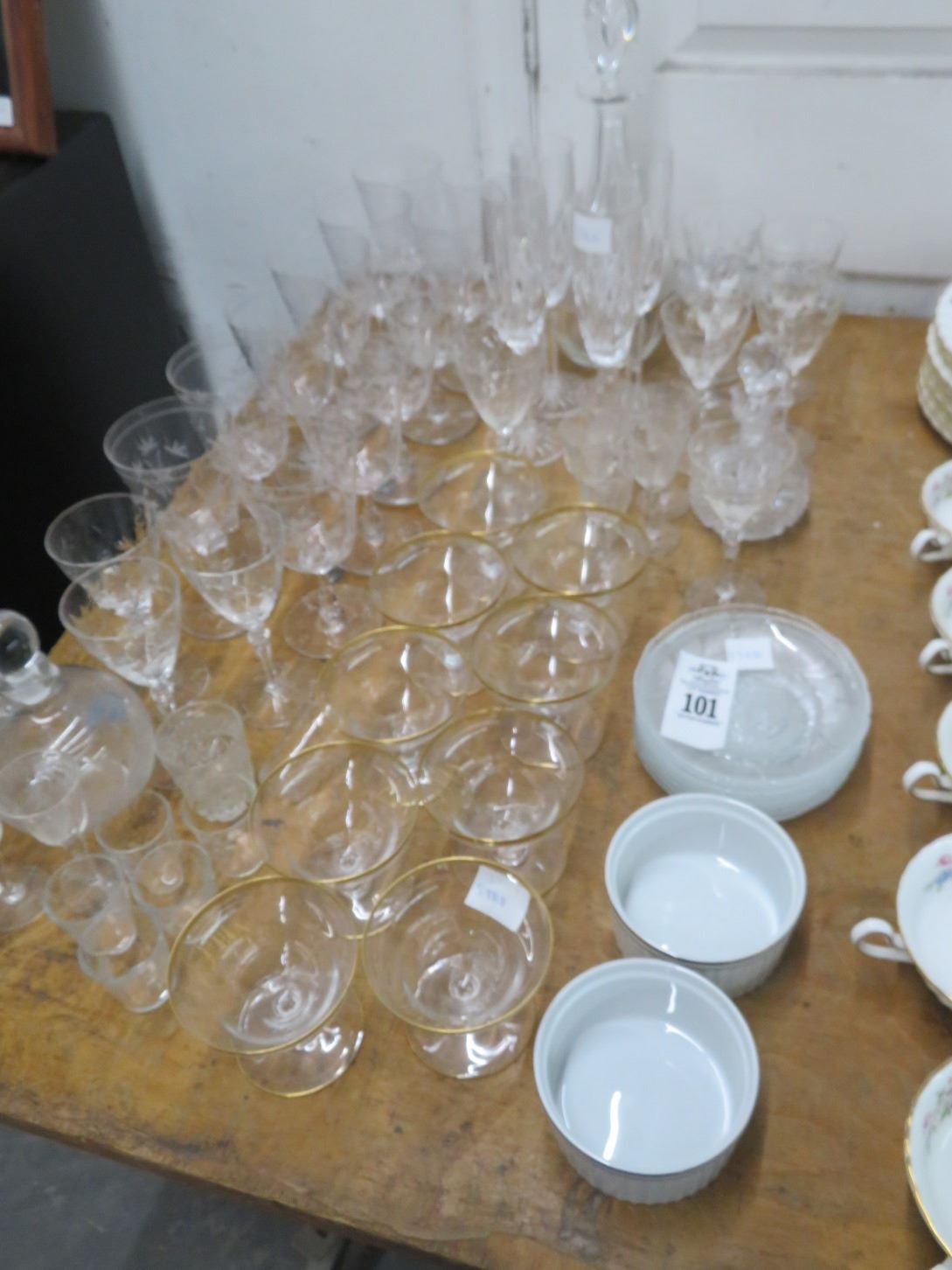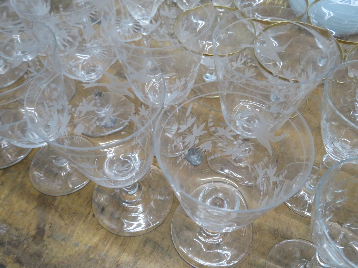 Asst. Etched and Crystal Stem Glasses and Bowls